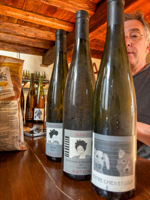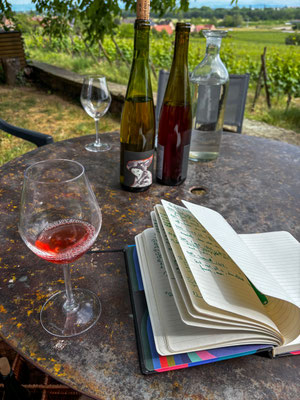 Heute haben wir die Weine aus dem nicht ganz einfachen Jahrgang 2023. Yannick hat es aber geschafft, viel Spannung und Charakter in seine Weine zu bringen. Auch sind die Weine am Gaumen wunderbar konstruiert und lassen nichts vermissen. Den beiden Pinots würde ich noch ein wenig Zeit auf der Flasche geben, bis in den Herbst. Dann werden sie noch viel schöner strahlen. Der Einstieg mit dem Auxerroir Deux Couleurs Jaune ist ohnehin bereits sehr hochwertig; mein Lieblingswein ist momentan aber der Gewürtztraminer Charlotte dans les Vignes der uns so richtig den Sommer verfeinert.